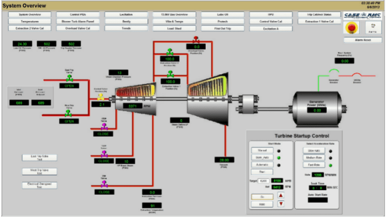 CASE RMC turbine control experts, collaborating with the client, selected the best ultramodern digital controller for the application. They programmed the custom software for the control of turbine speed, generator power, steam header pressures, and turbine overload/bypass flow, as well as turbine auxiliaries that included: