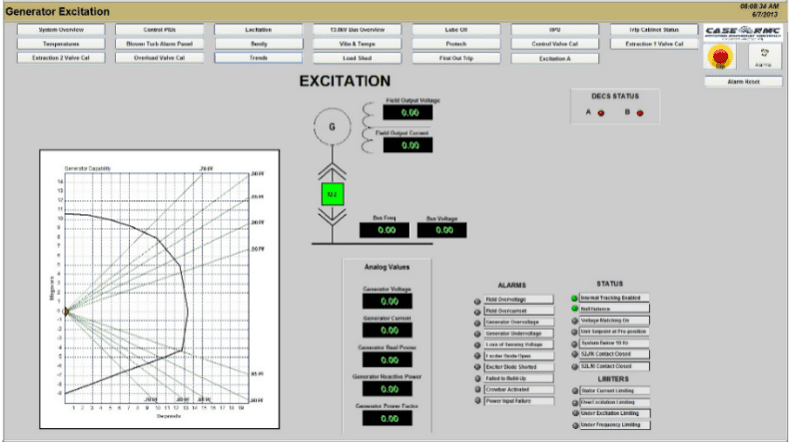 To ensure dependable generator operation, a new generator excitation system was required. It must provide reliable field current to the rotor windings of the generator and be designed to ensure reliability, stability, and fast transient response. Also, the remote site, located at the end of a long utility transmission circuit, created challenges beyond standard voltage control. Reactive power (VAr) and power factor (PF) controls were equally important for voltage support, generator, and transformer reliability, and managing PF penalties in utility billing.