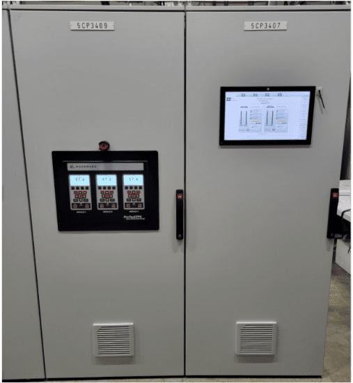 A new state-of-the-art modern digital excitation control system was designed and furnished with a fully redundant architecture for fault-tolerant generator operation. It delivers DC current to the generator’s rotor field windings, creating the magnetic field needed to generate terminal voltage and manage reactive power. The automatic voltage regulators (AVRs) in software and power electronics in the hardware section prevent voltage drops from increased load and enhance power stability. CASE RMC can provide both brushless (using a rotating diode bridge on the generator rotor) or static (using brushes/slip rings) excitation systems in sizes and configurations for any generator application.
